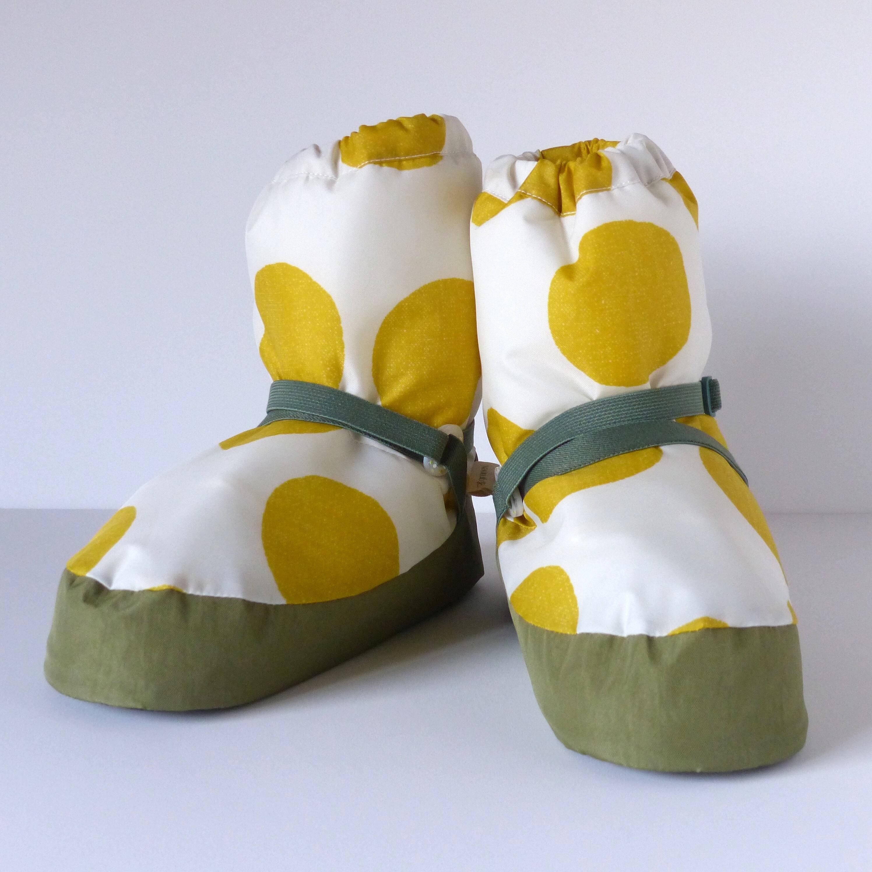 The inside has a thick quilt for warmth and lightness, making them easy to walk in.